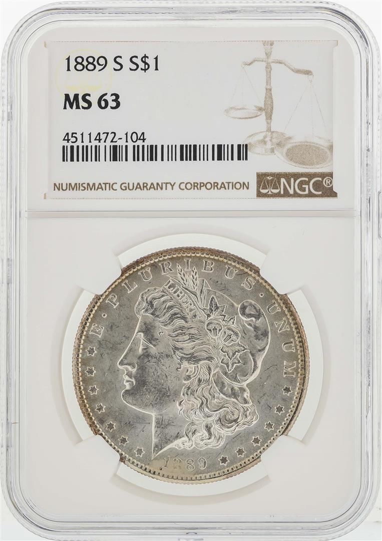 One 1889-S $1 Morgan Silver Dollar Coin NGC MS63. NGC Certified.