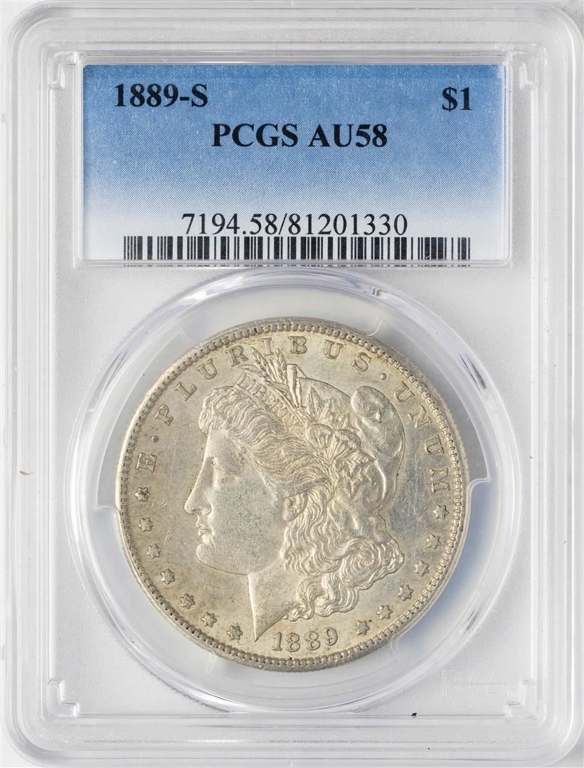 One 1889-S $1 Morgan Silver Dollar Coin PCGS AU58. PCGS Graded.