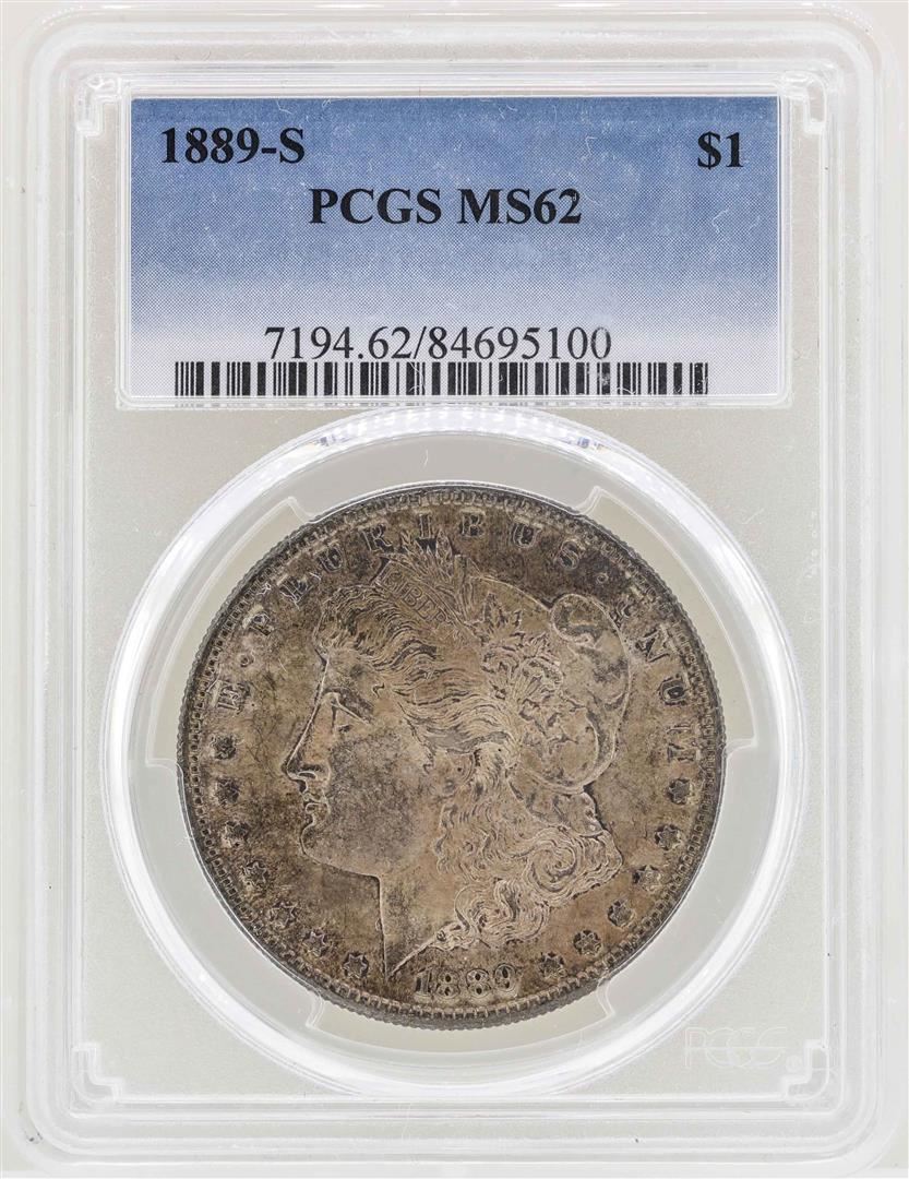 One 1889-S $1 Morgan Silver Dollar Coin PCGS MS62. PCGS Graded.