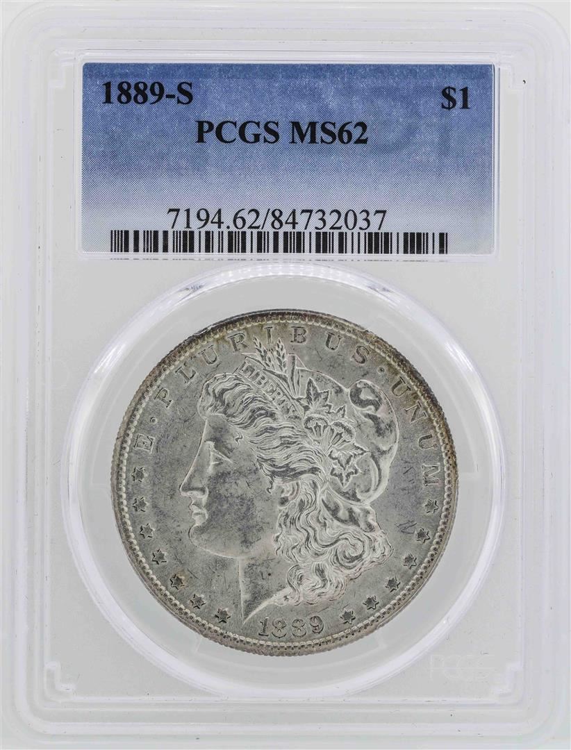 One 1889-S $1 Morgan Silver Dollar Coin PCGS MS62. PCGS Graded.
