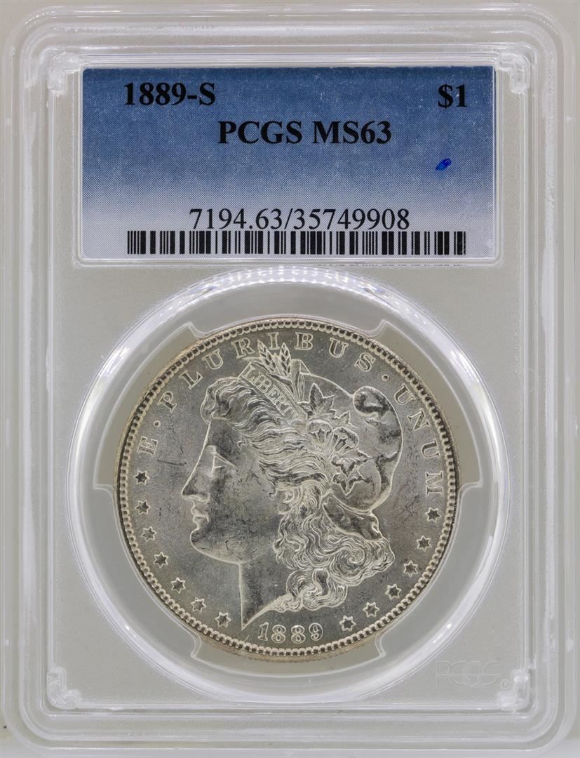 One 1889-S $1 Morgan Silver Dollar Coin PCGS MS63. PCGS Graded.