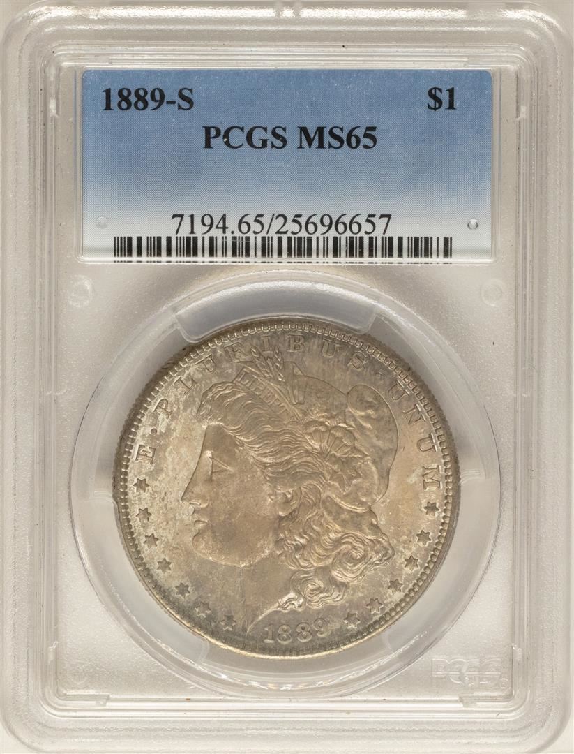 One 1889-S $1 Morgan Silver Dollar Coin PCGS MS65. PCGS Graded.