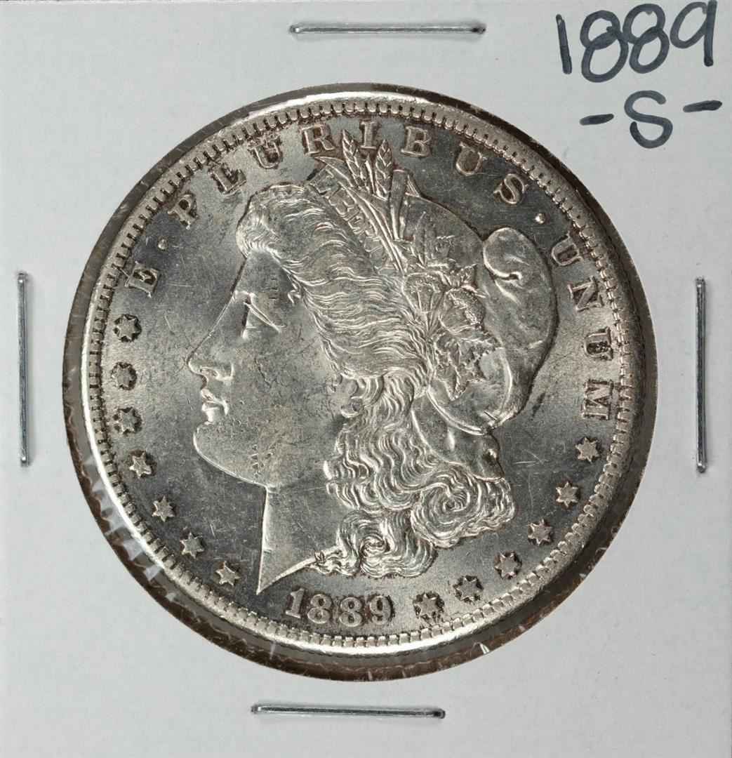 One 1889-S $1 Morgan Silver Dollar Coin.