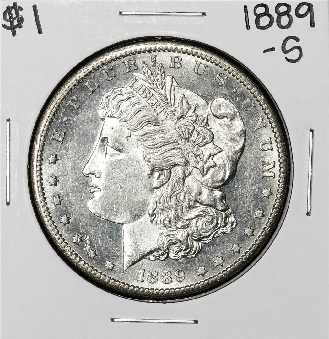 One 1889-S $1 Morgan Silver Dollar Coin.