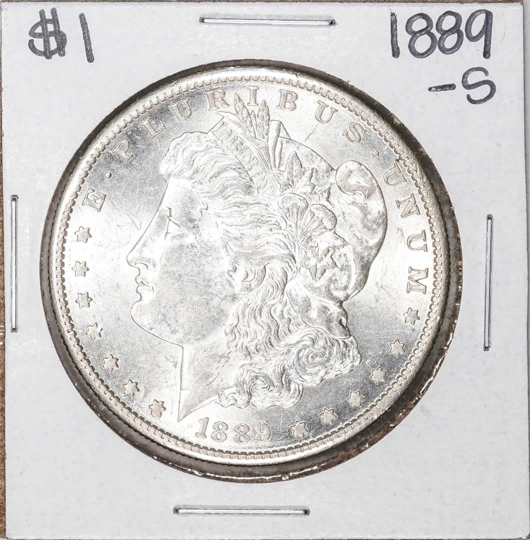One 1889-S $1 Morgan Silver Dollar Coin.