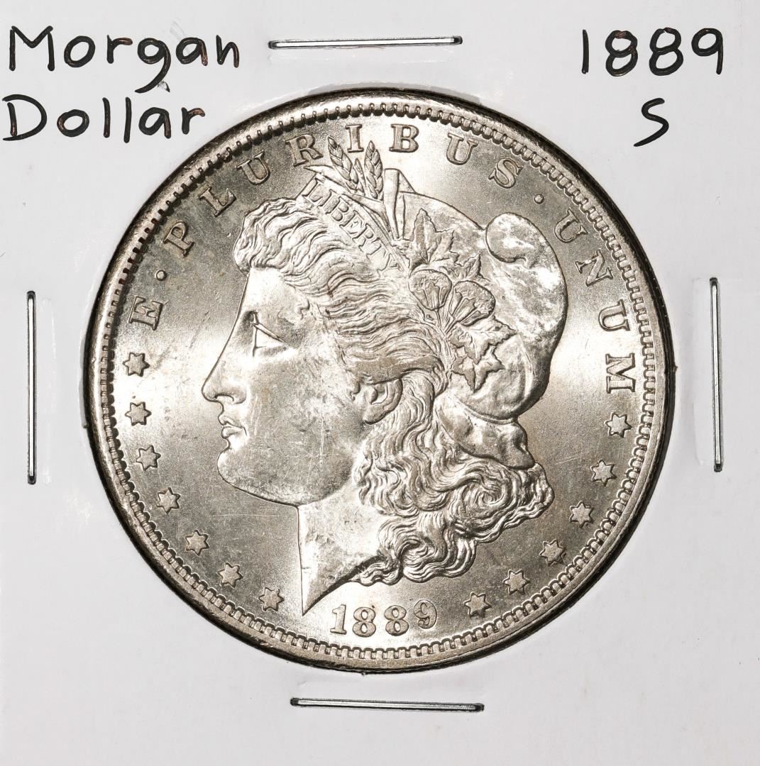 One 1889-S $1 Morgan Silver Dollar Coin.