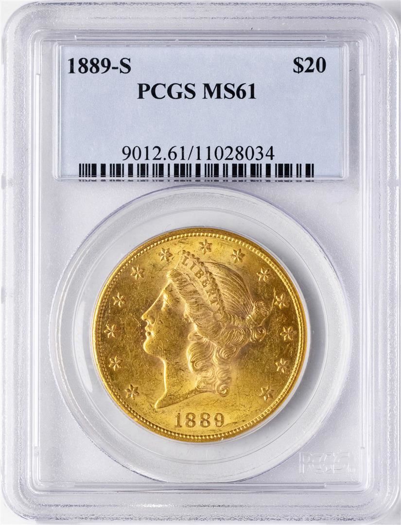 One 1889-S $20 Liberty Head Double Eagle Gold Coin PCGS MS61. PCGS Graded.