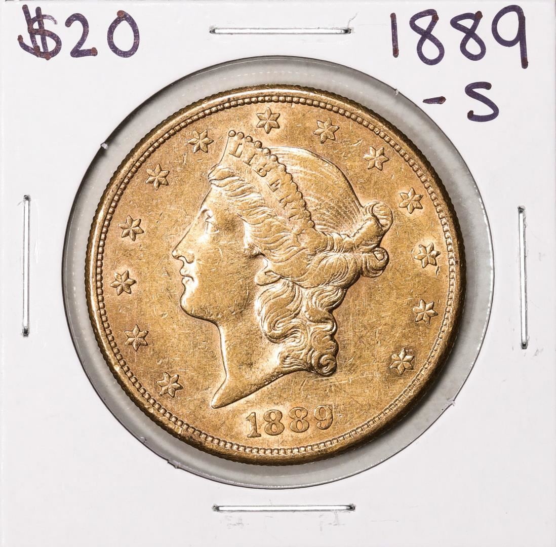 One 1889-S $20 Liberty Head Double Eagle Gold Coin.