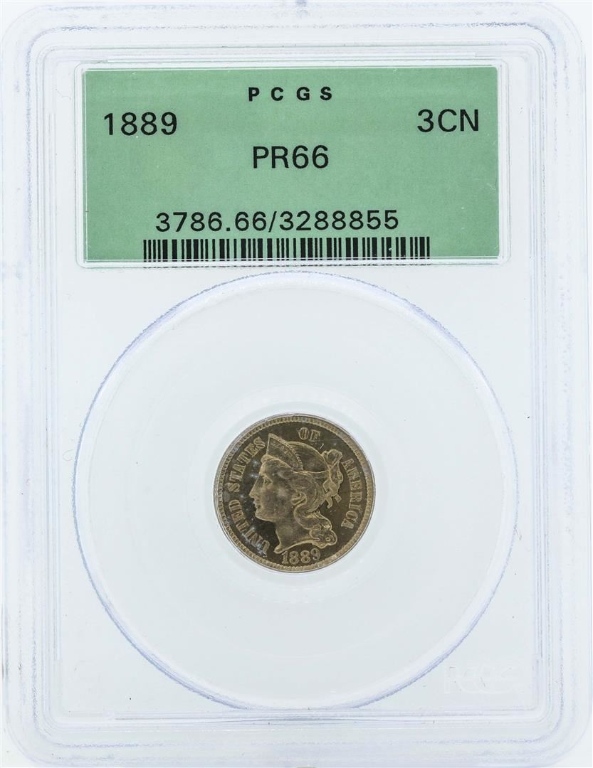One 1889 Three Cent Nickel Piece Proof Coin PCGS PR66. PCGS Graded.