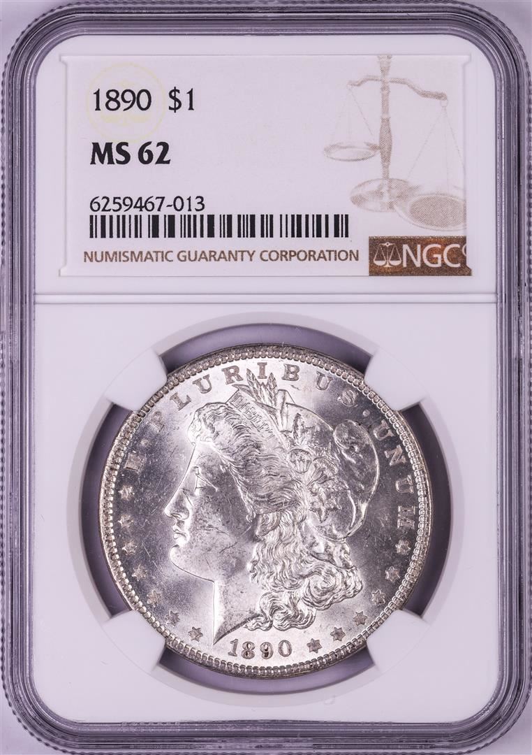 One 1890 $1 Morgan Silver Dollar Coin NGC MS62. NGC Certified.