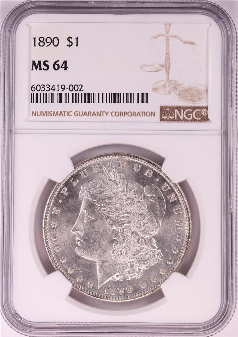 One 1890 $1 Morgan Silver Dollar Coin NGC MS64.