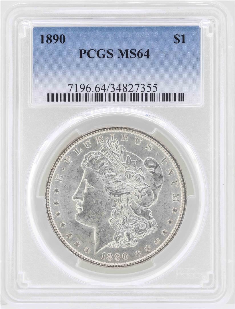 One 1890 $1 Morgan Silver Dollar Coin PCGS MS64. PCGS Graded.
