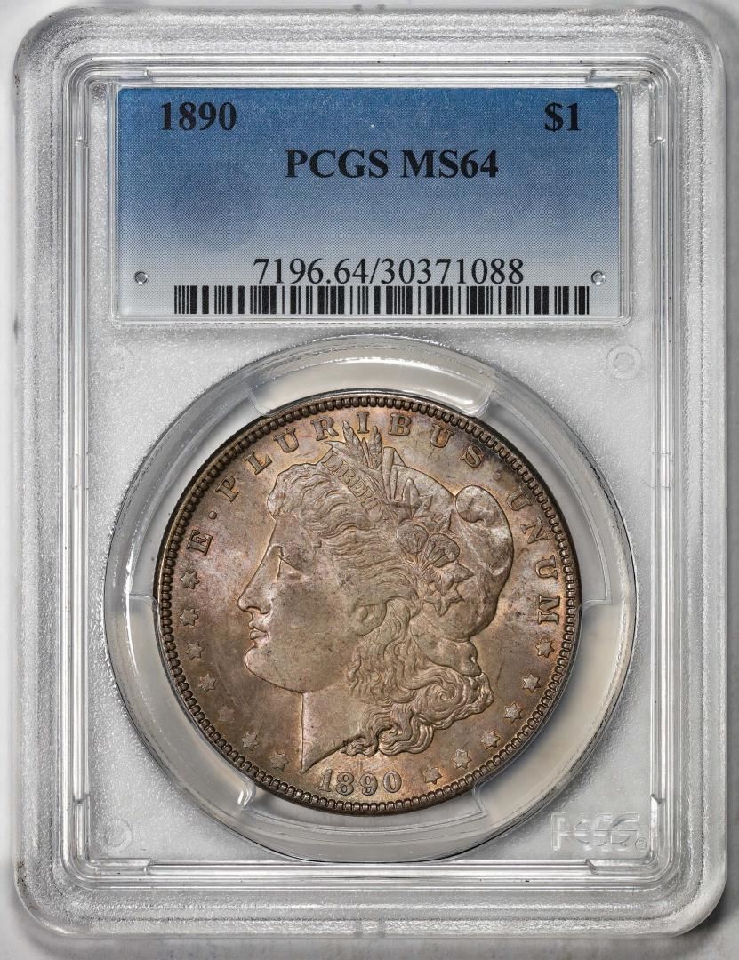 One 1890 $1 Morgan Silver Dollar Coin PCGS MS64. PCGS Graded.