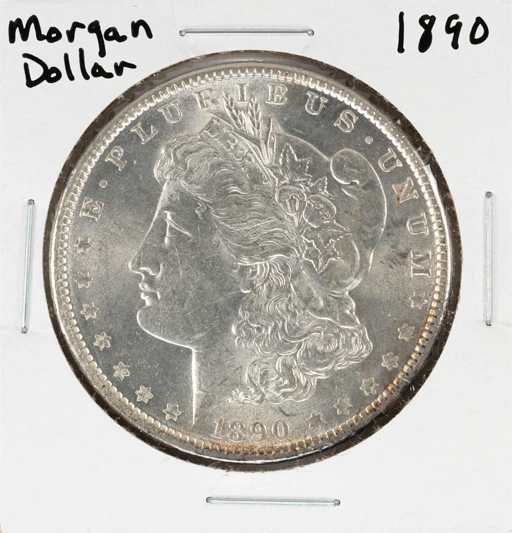 One 1890 $1 Morgan Silver Dollar Coin.