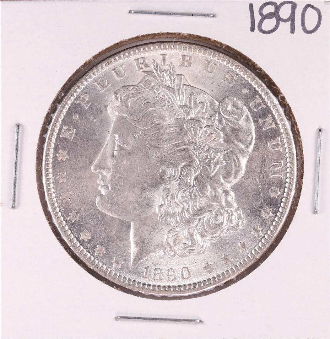 One 1890 $1 Morgan Silver Dollar Coin.