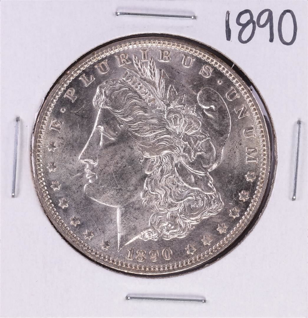 One 1890 $1 Morgan Silver Dollar Coin.