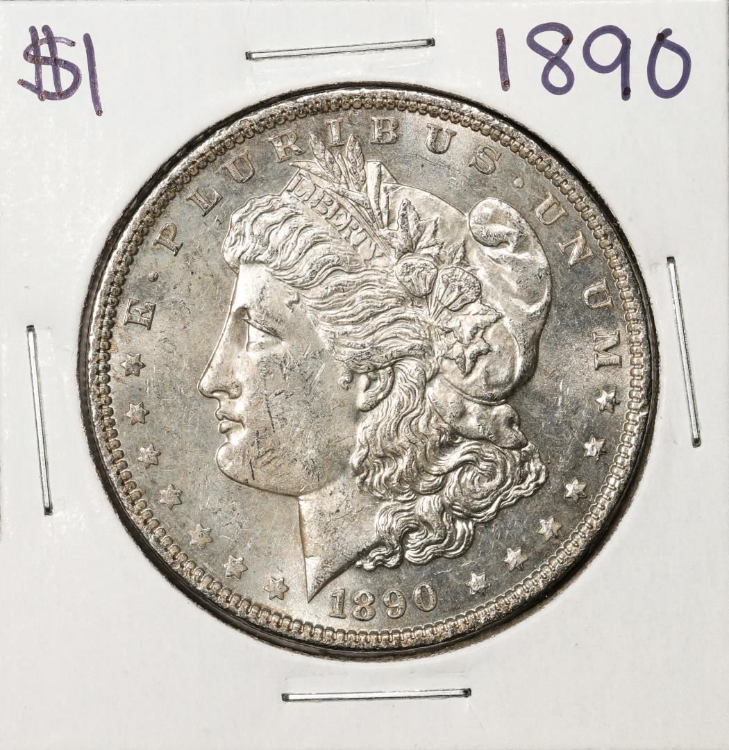 One 1890 $1 Morgan Silver Dollar Coin.