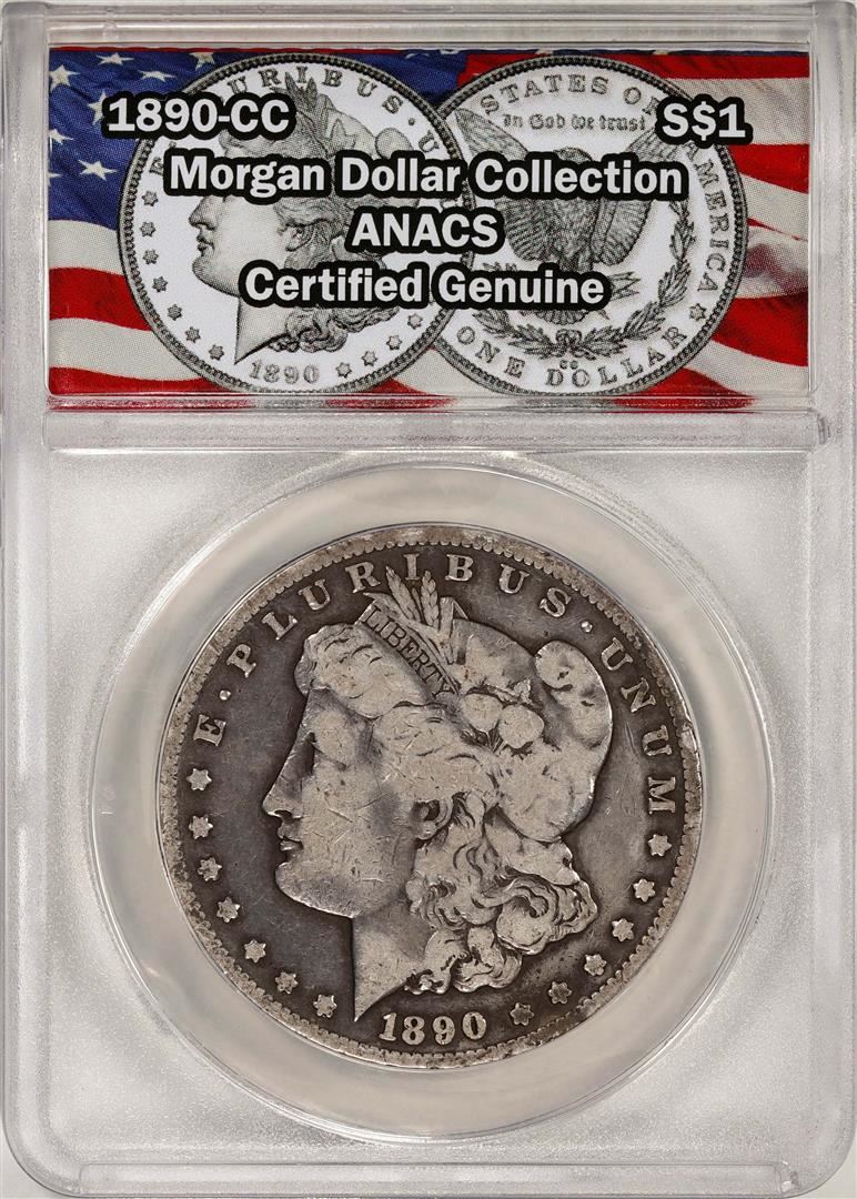 One 1890-CC $1 Morgan Silver Dollar Coin ANACS Certified Genuine. ANACS Certified.