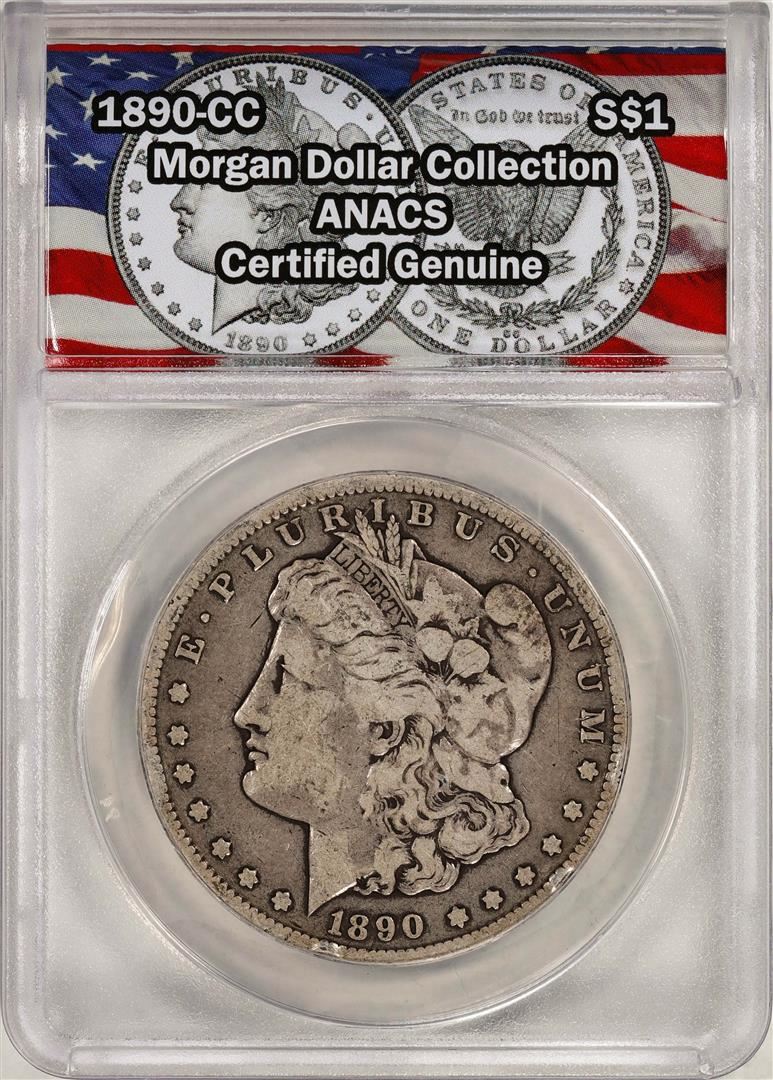 One 1890-CC $1 Morgan Silver Dollar Coin ANACS Certified Genuine. ANACS Certified.