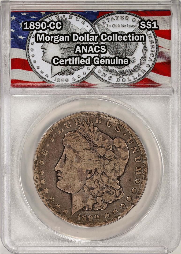 One 1890-CC $1 Morgan Silver Dollar Coin ANACS Certified Genuine. ANACS Certified.
