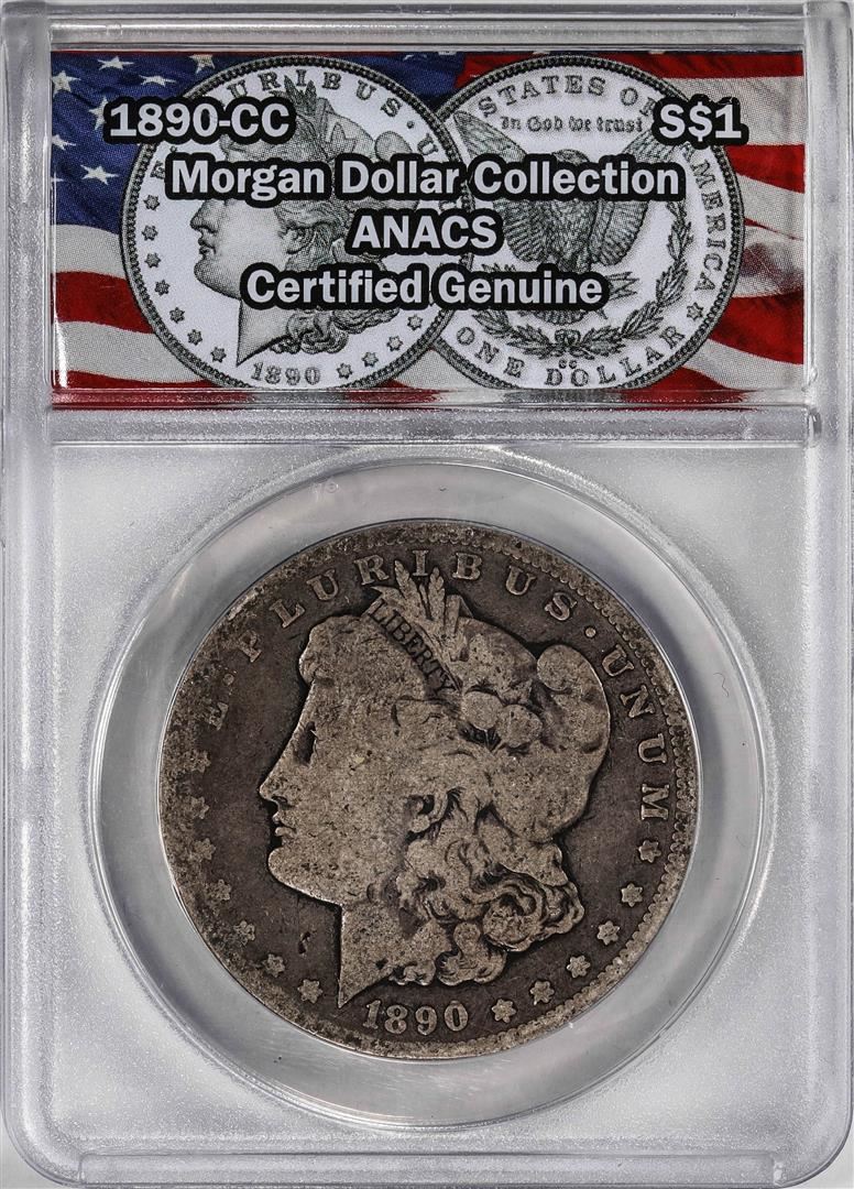 One 1890-CC $1 Morgan Silver Dollar Coin ANACS Genuine. ANACS Certified.
