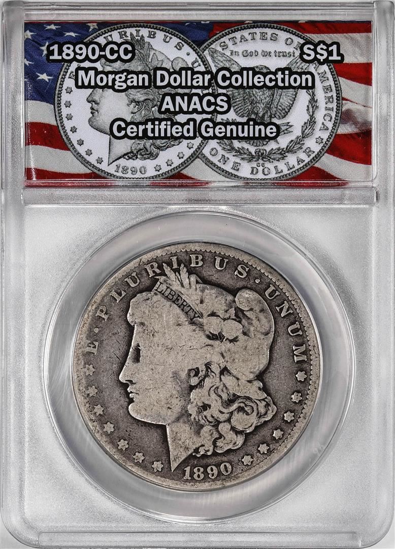 One 1890-CC $1 Morgan Silver Dollar Coin ANACS Genuine. ANACS Certified.