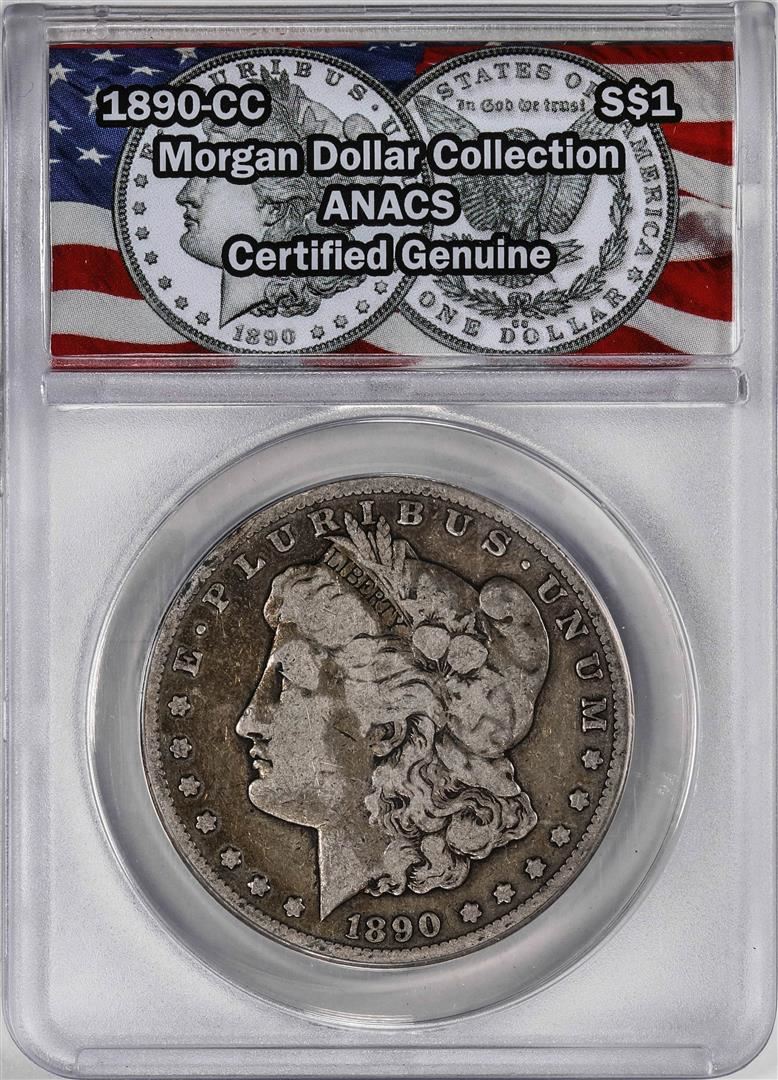 One 1890-CC $1 Morgan Silver Dollar Coin ANACS Genuine. ANACS Certified.
