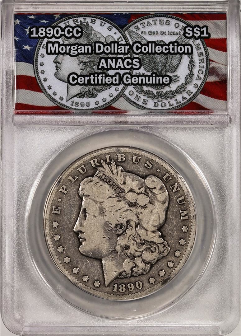 One 1890-CC $1 Morgan Silver Dollar Coin ANACS Genuine. ANACS Certified.