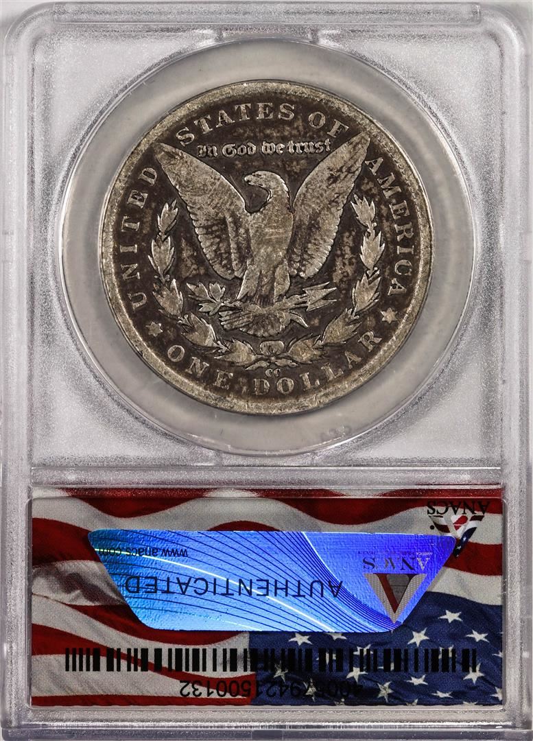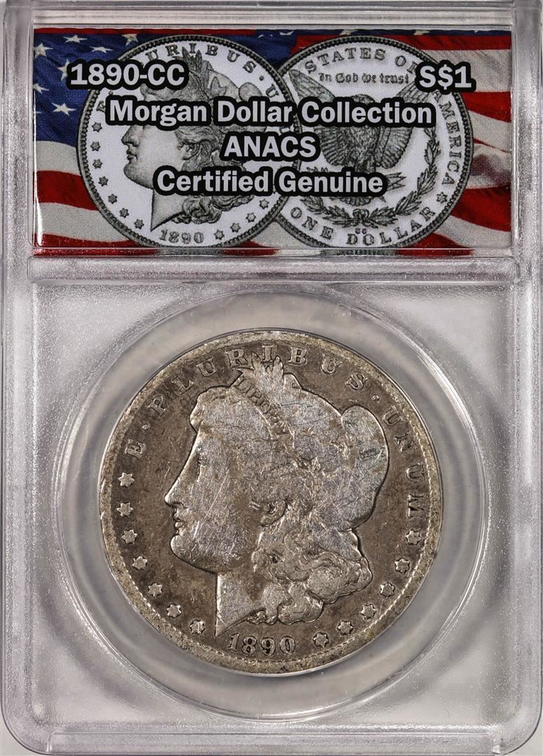 One 1890-CC $1 Morgan Silver Dollar Coin ANACS Genuine. ANACS Certified.