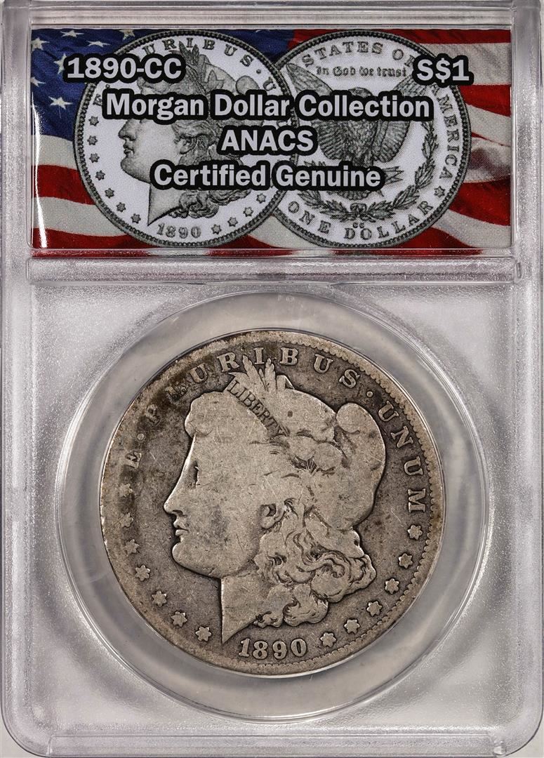 One 1890-CC $1 Morgan Silver Dollar Coin ANACS Genuine. ANACS Certified.