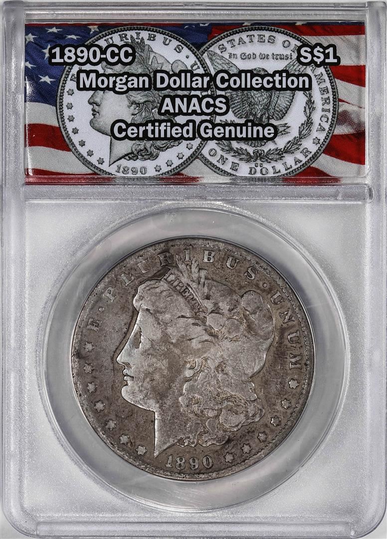 One 1890-CC $1 Morgan Silver Dollar Coin ANACS Genuine. ANACS Certified.
