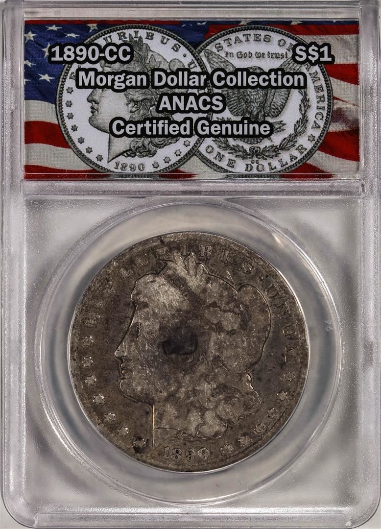 One 1890-CC $1 Morgan Silver Dollar Coin ANACS Genuine. ANACS Certified.