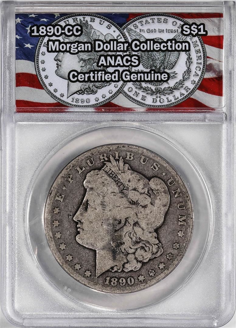 One 1890-CC $1 Morgan Silver Dollar Coin ANACS Genuine. ANACS Certified.