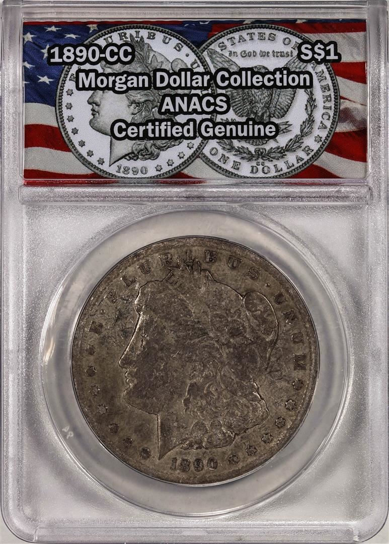 One 1890-CC $1 Morgan Silver Dollar Coin ANACS Genuine. ANACS Certified.