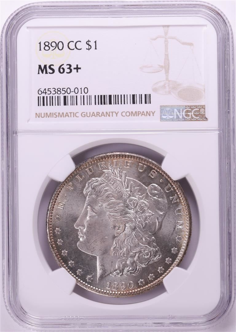 One 1890-CC $1 Morgan Silver Dollar Coin NGC MS63+ Plus. NGC Certified.