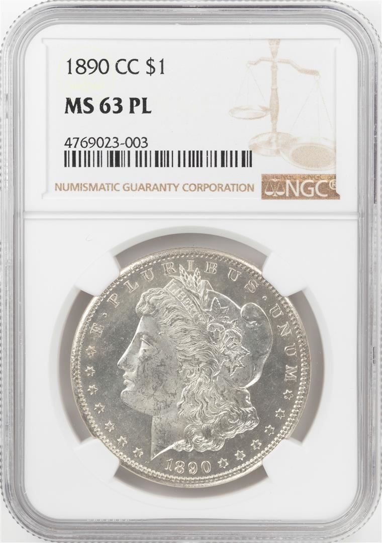One 1890-CC $1 Morgan Silver Dollar Coin NGC MS63PL. NGC Certified.