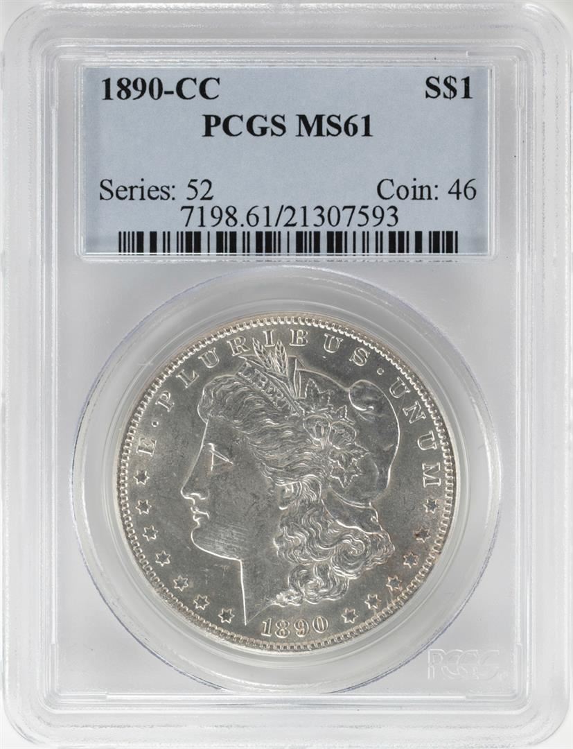 One 1890-CC $1 Morgan Silver Dollar Coin PCGS MS61. PCGS Graded.