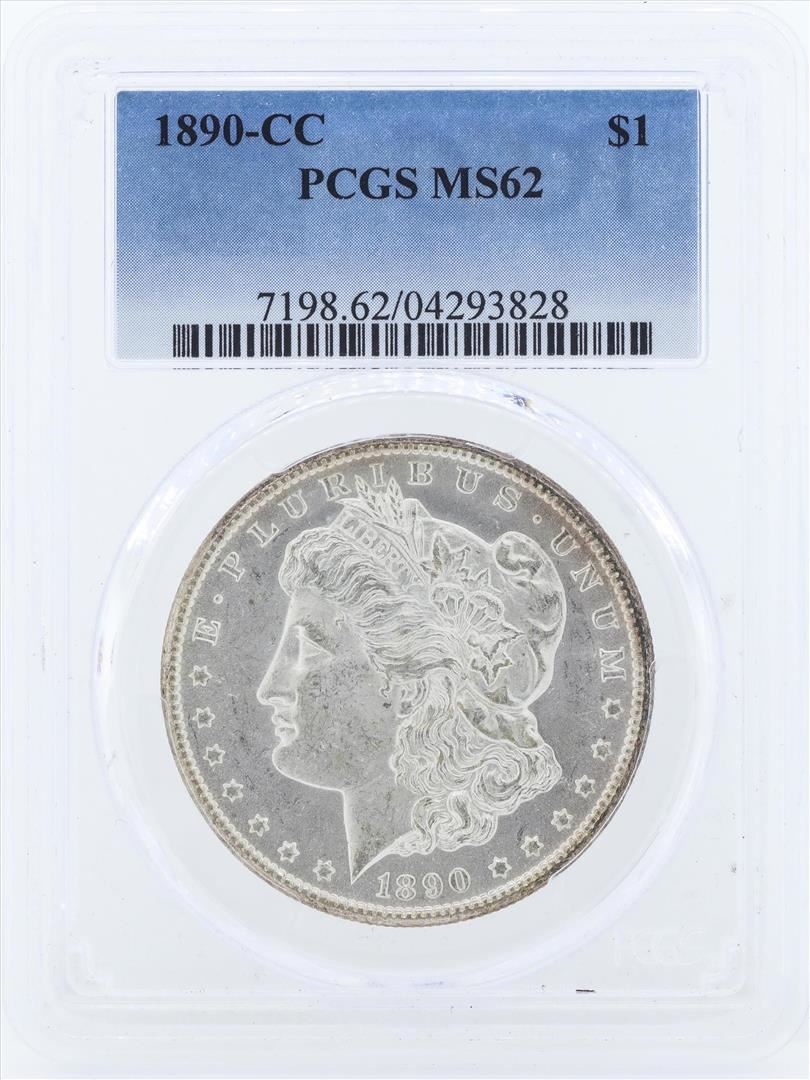 One 1890-CC $1 Morgan Silver Dollar Coin PCGS MS62. PCGS Graded.