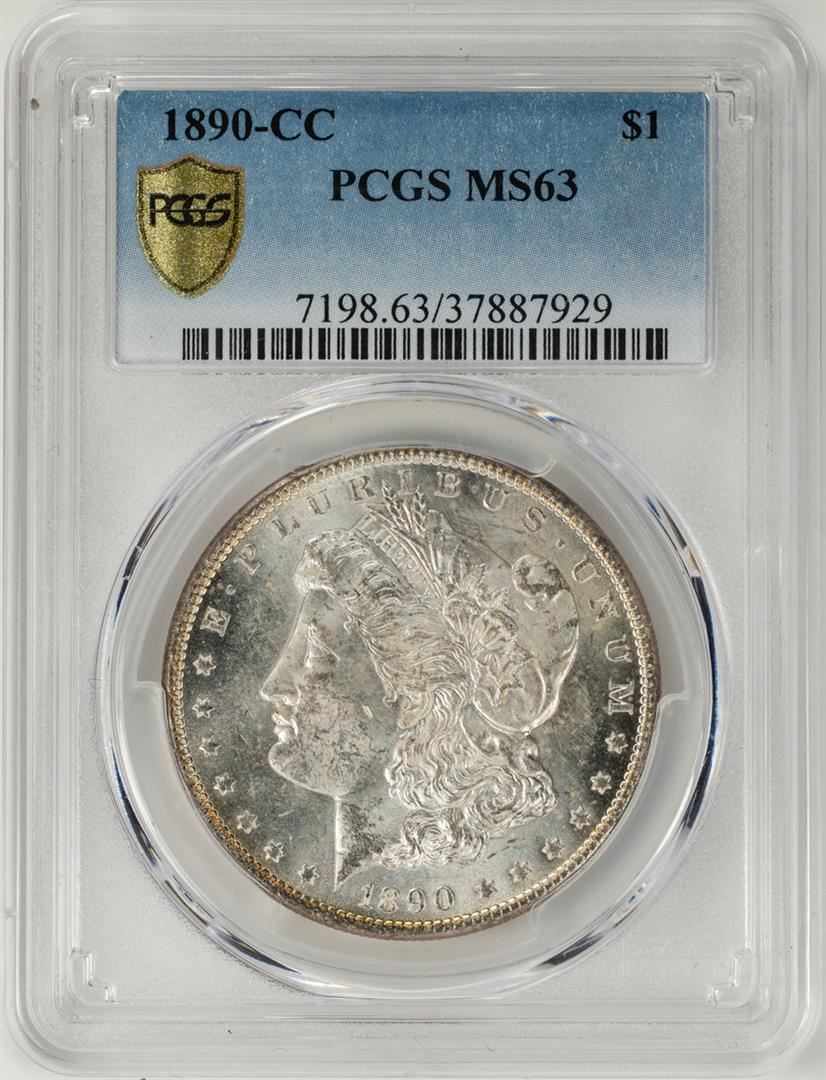 One 1890-CC $1 Morgan Silver Dollar Coin PCGS MS63. PCGS Graded.