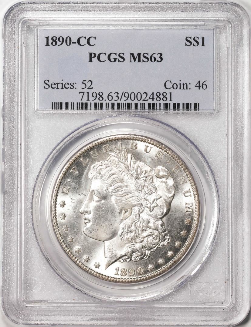 One 1890-CC $1 Morgan Silver Dollar Coin PCGS MS63. PCGS Graded.