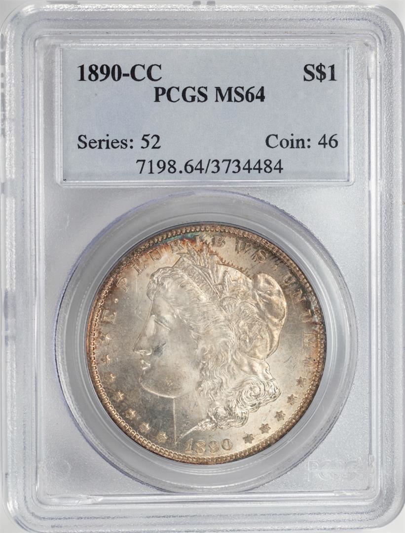 One 1890-CC $1 Morgan Silver Dollar Coin PCGS MS64. PCGS Graded.