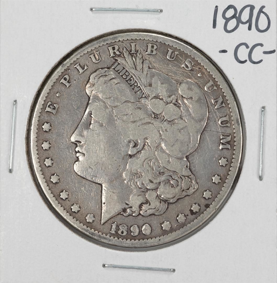 One 1890-CC $1 Morgan Silver Dollar Coin.