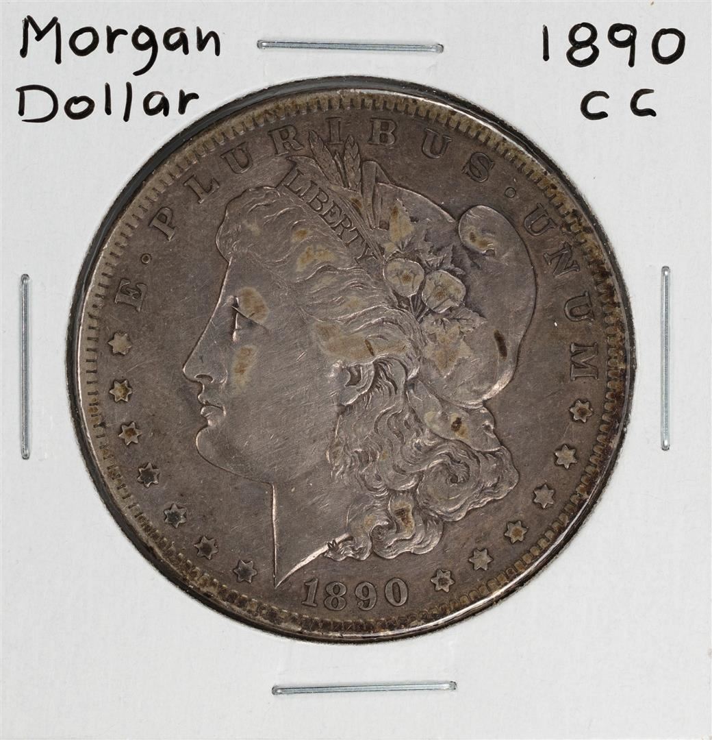 One 1890-CC $1 Morgan Silver Dollar Coin.