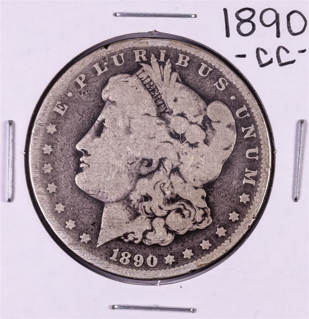 One 1890-CC $1 Morgan Silver Dollar Coin.