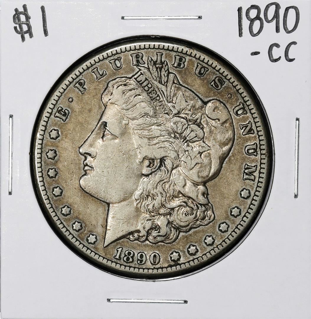 One 1890-CC $1 Morgan Silver Dollar Coin.