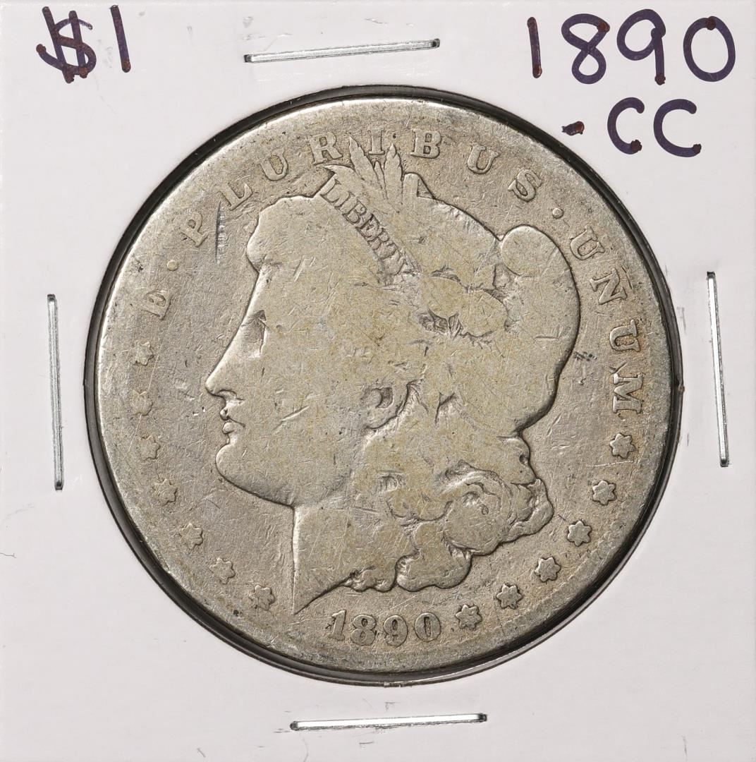 One 1890-CC $1 Morgan Silver Dollar Coin.