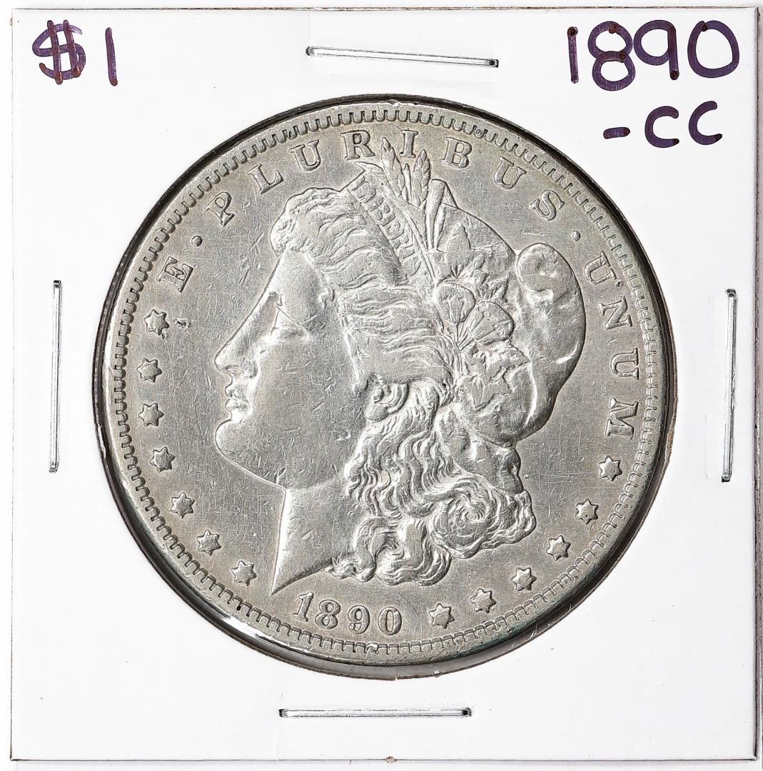 One 1890-CC $1 Morgan Silver Dollar Coin.