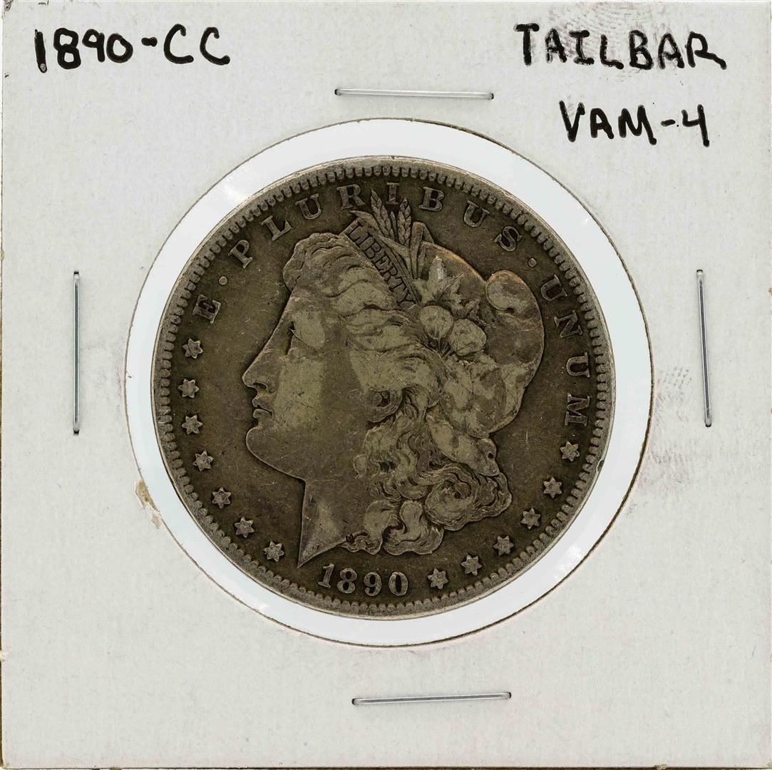 One 1890-CC $1 Morgan Silver Dollar VAM-4 Tailbar.