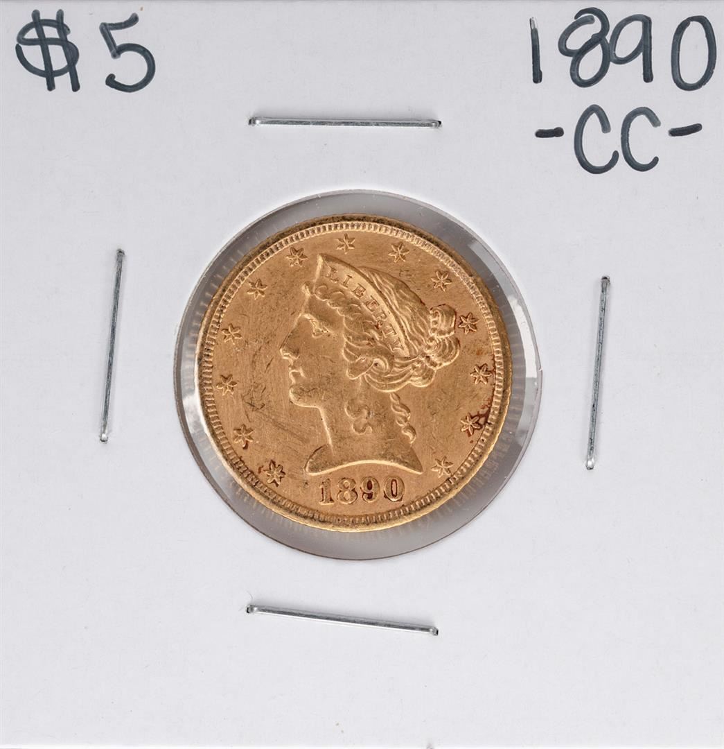 One 1890-CC $5 Liberty Head Half Eagle Gold Coin.