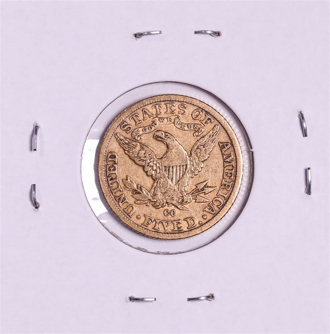 One 1890-CC $5 Liberty Head Half Eagle Gold Coin.
